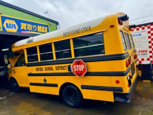 🚐 アメリカのスクールバスがオイル交換で入庫しました!